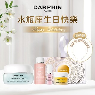 水瓶座生日快樂💓送女友生日禮物 送禮【DARPHIN 朵法】法式水漾美妍保濕保養組| (NEW)活水保濕凝膠5ml+全效舒緩精華5ml花梨木卸妝膏5ml+Happy Birthday水鑽髮箍+提袋