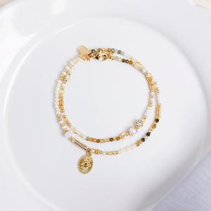 【Ficelle輕珠寶】呼喊愛情|月光石 托帕石 淡水珍珠 手作飾品 黃銅鍍18K金 雙層手鍊