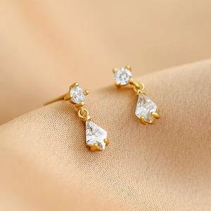 🧡『LINE禮物獨家』【OCTOBER 16Th】S925純銀鍍14K金水滴鋯石月亮耳環耳釘#CRY4027 開運 生日禮物 閨蜜禮物 情人節禮物 交換禮物 客製化禮物