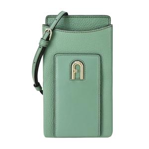 [平輸版] 【FURLA】PRIMULA拱門LOGO荔枝紋斜背手機包(湖水綠)真品平輸