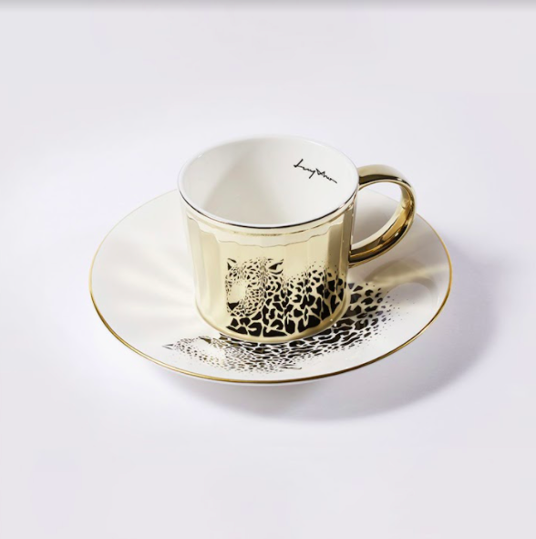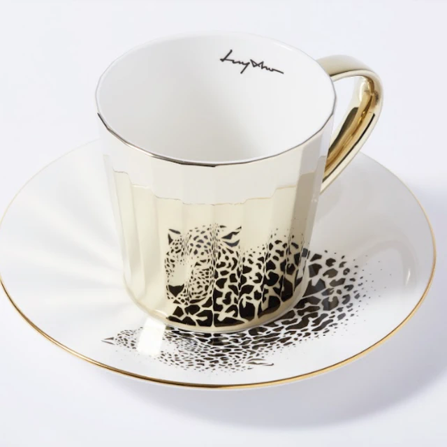 虎虎生風 霸氣出場【韓國 Luycho】鏡面倒影動物圖案咖啡杯 - 老虎 (滑面) 咖啡杯 托盤 喝咖啡 飲品 可愛療癒 好友 生日禮