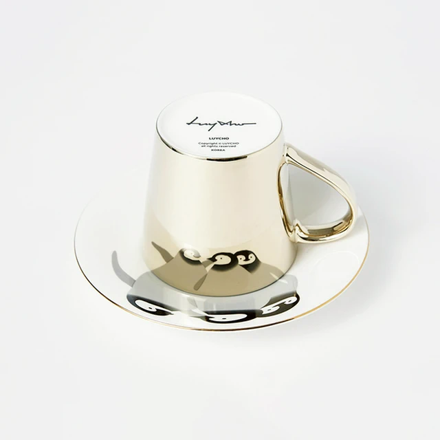 午後小時光【韓國 Luycho】鏡面倒影動物圖案咖啡杯 - 神奈川沖浪裏 (滑面) 咖啡杯 托盤 喝咖啡 飲品 可愛療癒 好友 生日禮