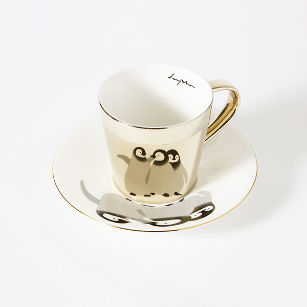 紓壓小企鵝【Luycho】鏡面倒影動物圖案咖啡杯 - 企鵝家族 (滑面) 咖啡杯 托盤 喝咖啡 飲品 可愛療癒 好友 生日禮