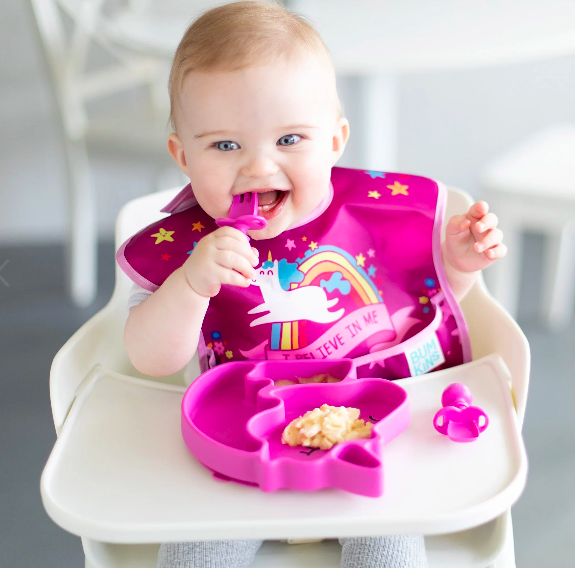 歡樂美味食光【Bumkins】矽膠防滑餐盤 - 粉色 寶寶禮 用餐 吃飯 餐盤 自主用餐 可吸住桌面 清洗容易