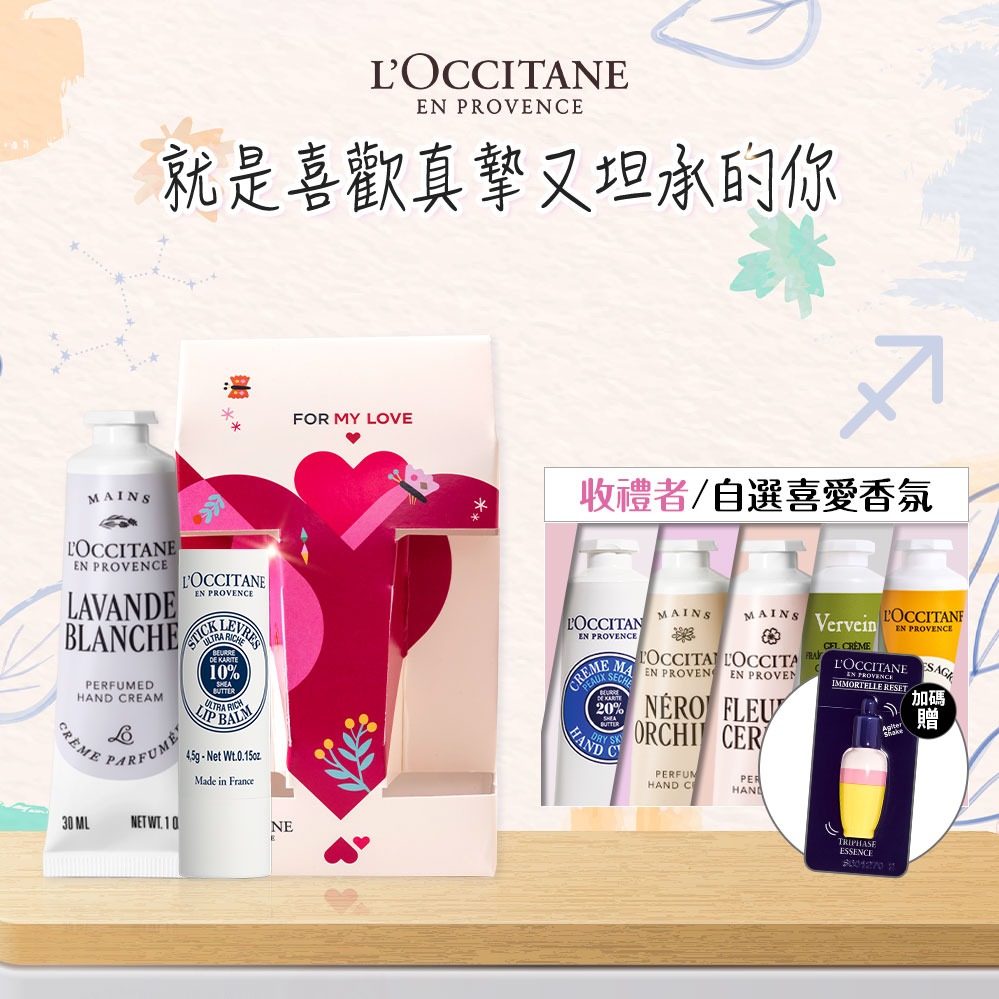 [限時加贈守護掛飾]【歐舒丹】🙌花語Hug & Kiss (收禮者任選香氛)💋(護唇膏+護手霜+禮盒)『LINE禮物獨家組合』🎁迎新年