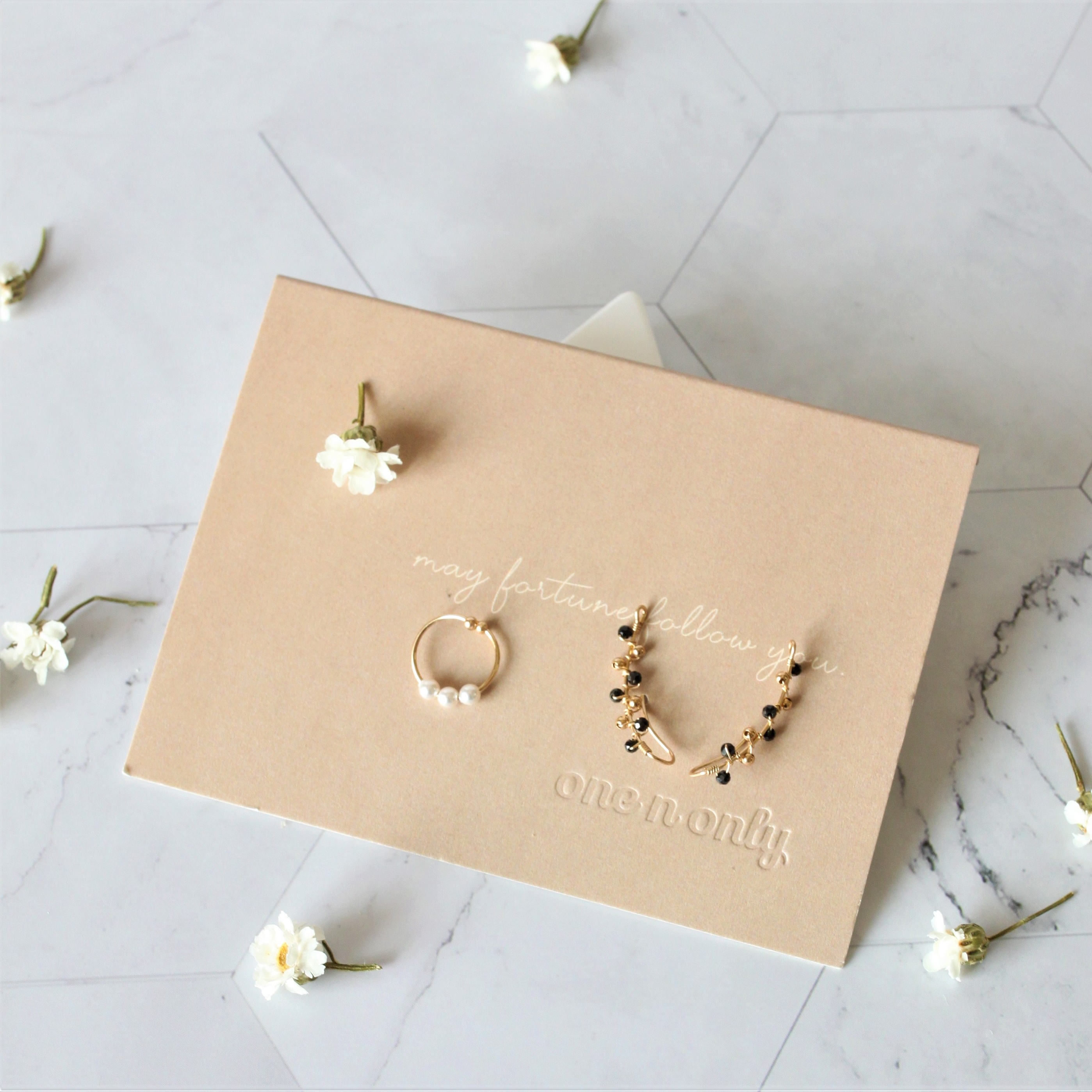 【One N Only】【母親節禮物】 神秘禮物14KGF珍珠黑尖晶石耳環