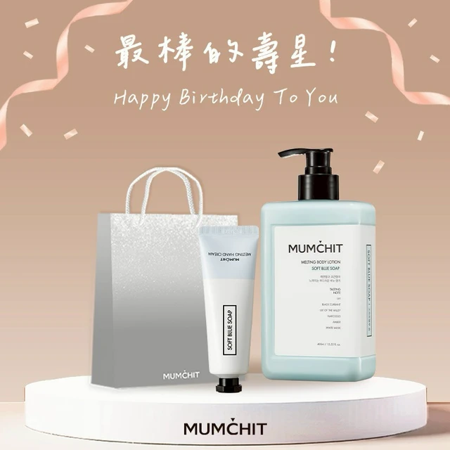 快速出貨【MUMĆHIT】生日快樂!香氛身體乳液+天然香氛沐浴乳+香氛護手霜2入+霧銀禮袋(大)(生日禮物)