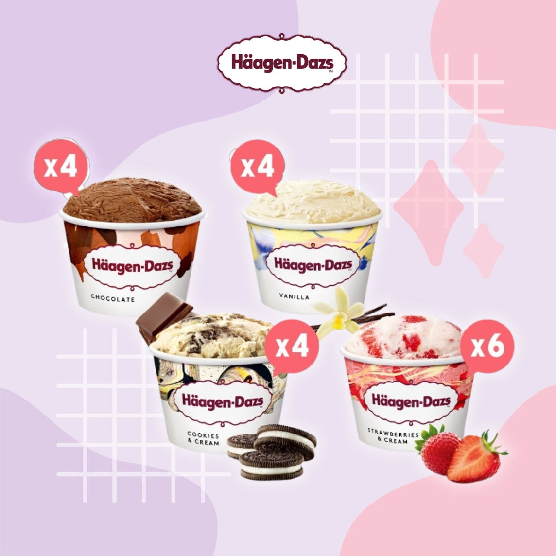 ✨限時優惠(加17元加購冰淇淋單球券)【Häagen-Dazs哈根達斯】 新蜜糖三重奏 75ml18入組(草莓6香草4巧克4淇巧4) 🚚宅配到家