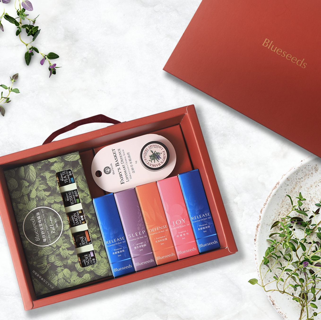 ✯禮物首選✯【Blueseeds】你心中朋朋最像和哪個角色 ! l 限量禮盒+任選滾珠精油 x2+玫瑰天竺葵護手霜30ml l 芙彤園