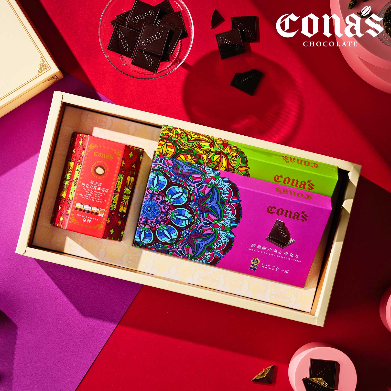 iTQi食品米其林1星獎⭐ 【Cona's妮娜巧克力】醇濃薄片夾心巧克力(12入/盒)|快速出貨🚚