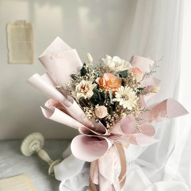 【日常好事‧花寓】永生花花束_清新粉色夢境/附贈PVC透明梯型袋 |七夕情人節推薦 情人節花束 生日紀念 送禮推薦