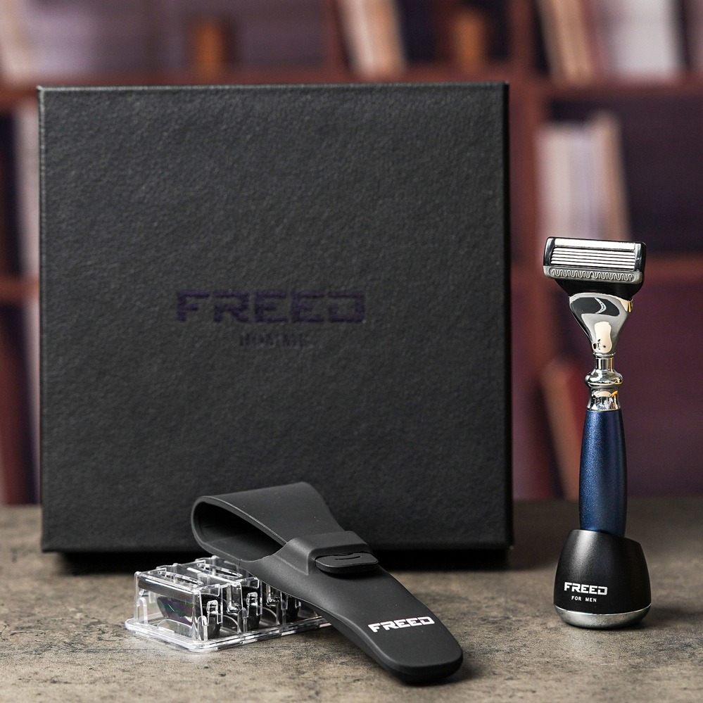 [快速出貨]【FREED】雙刃式刮鬍刀天行者禮盒五件組-時尚藍 客製化刻字 生日禮物 送禮推薦 男生禮物 摩羯座 水瓶座 禮物獨家 新品上市 情人節禮物