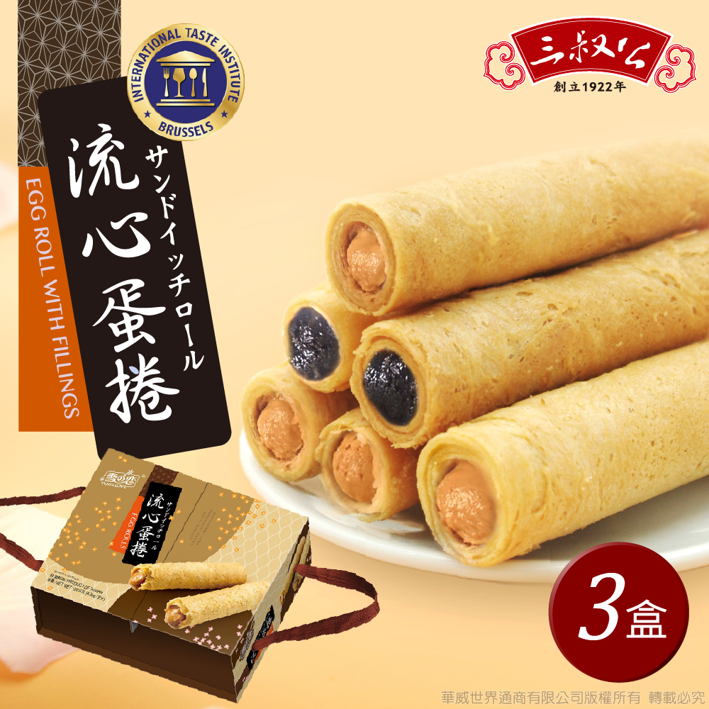 心想事成萬事足【三叔公】漿爆流心蛋捲禮盒 - 綜合花生芝麻 (12入/盒) FS-051 馬年賀禮 春節禮盒 新春禮盒 過年伴手禮 新年禮盒 下午茶 點心 濃郁 酥脆 年節送禮 一口接一口 美味分享