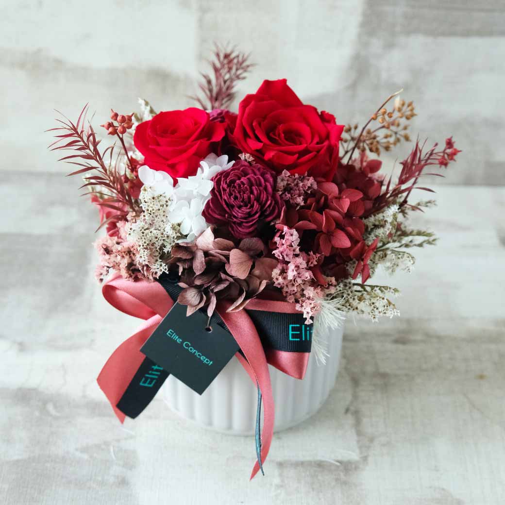 【閒暇人花藝設計】經典祝賀 紅粉永生盆花 / 開幕花禮 祝賀禮物 新年賀禮 新年盆花