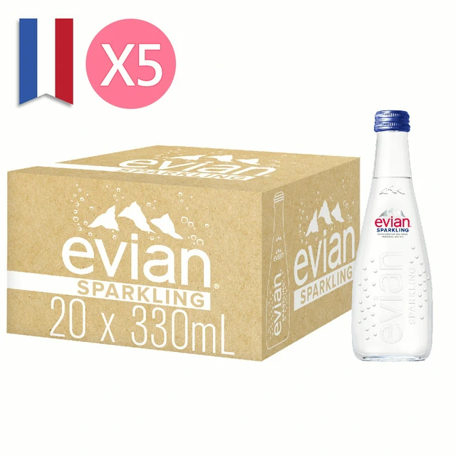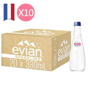 【Evian】依雲氣泡天然礦泉水-玻璃瓶330ml (20入/箱) x 10 箱