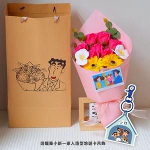 1+1【花花市集】廣志送美伢的花束同款永生花💐加蠟筆小新一家人造型悠遊卡吊飾 情人節 告白 花束