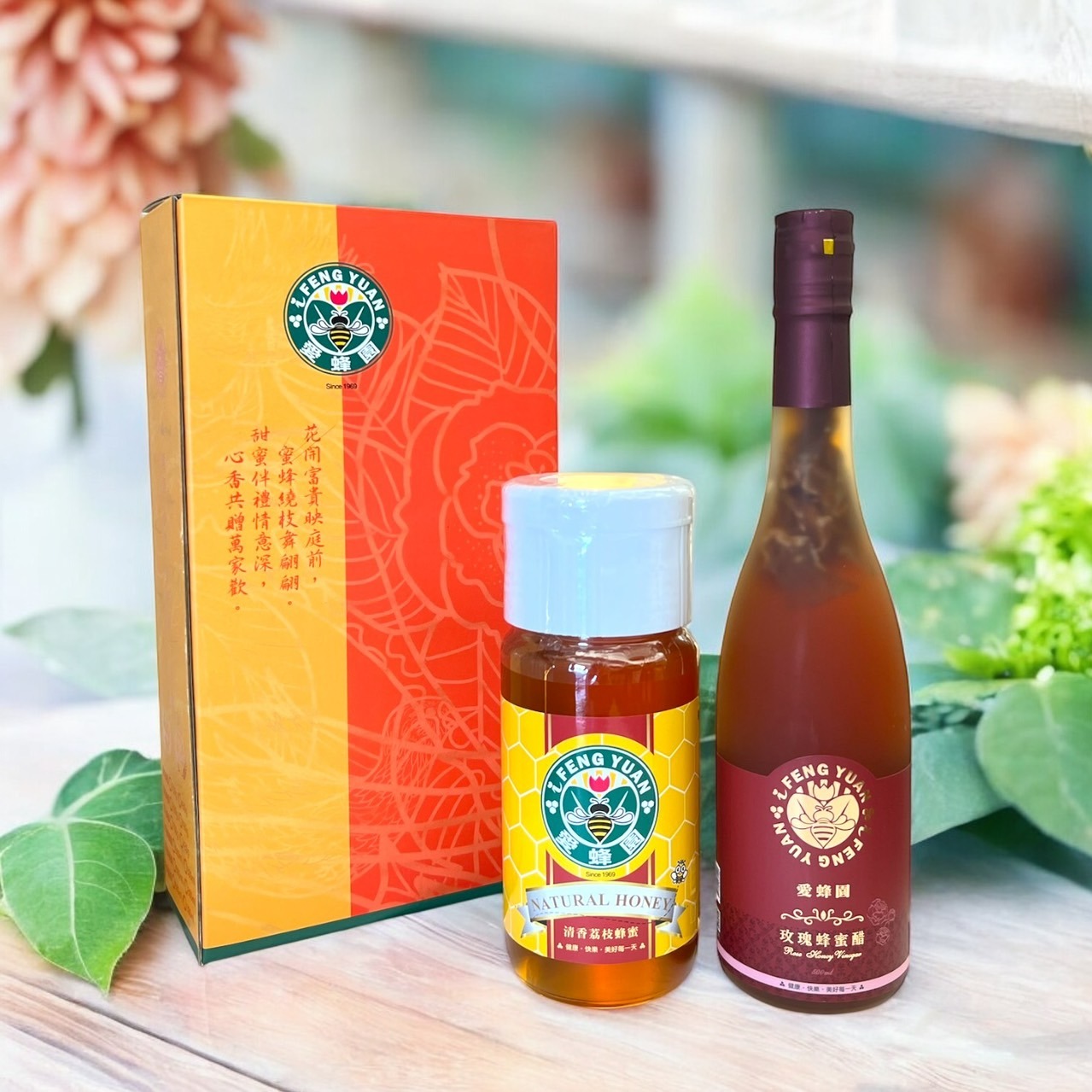 桃好禮盒【新竹蜂蜜 愛蜂園】百花蜂蜜醋300ml+玫瑰蜂蜜醋300ml 過年禮盒/生日禮/中秋禮盒