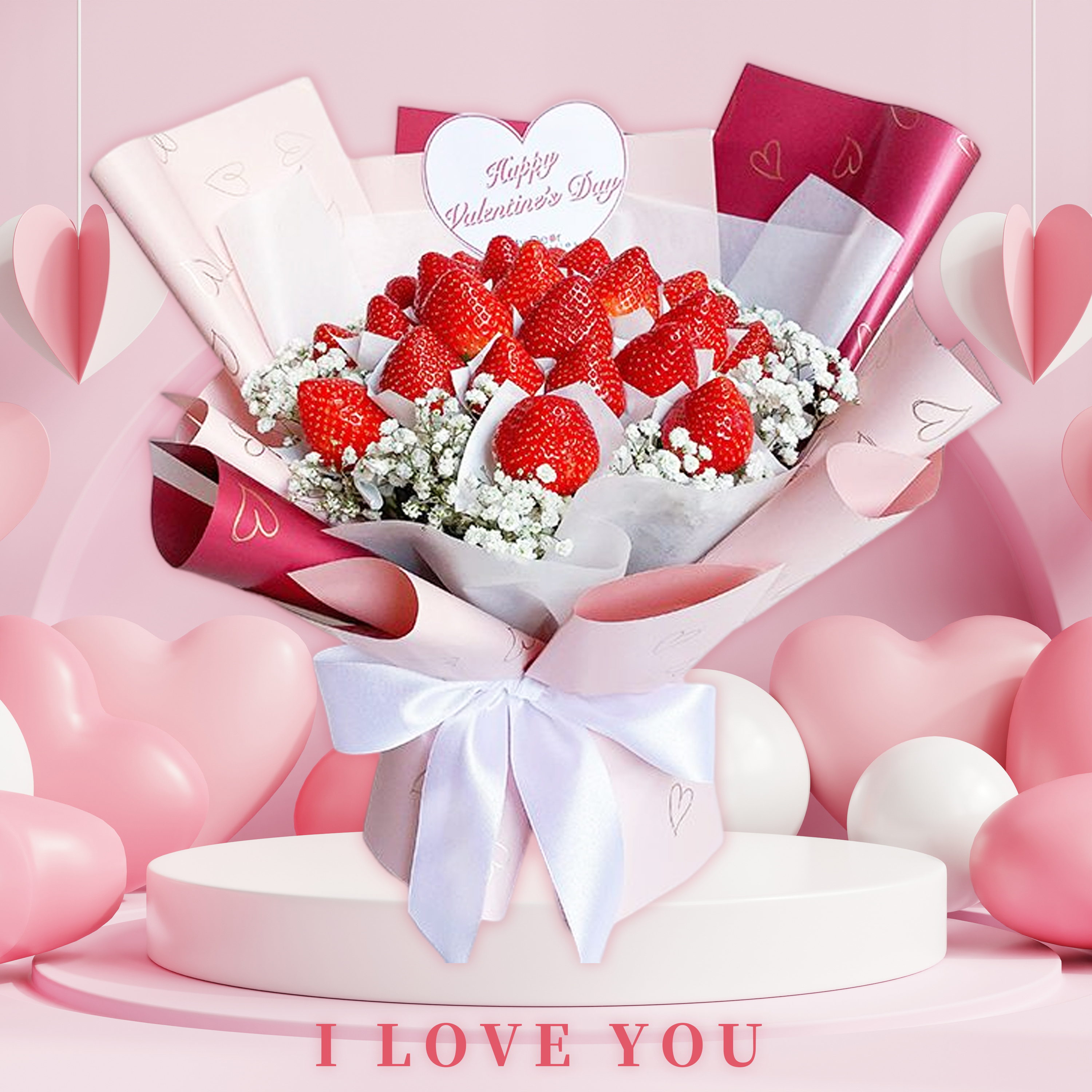 520我愛你❤️【My Dear草莓花束】Summer love 粉色草莓花束小型 水瓶座生日禮物