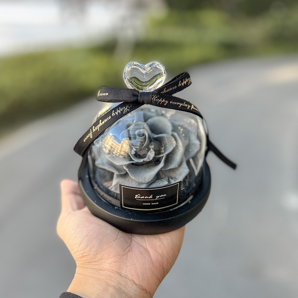 【花意空間 Flower Space】 風鈴玻璃盅檯燈 - 迷霧灰 | 永生花《全台配送》情人節快樂