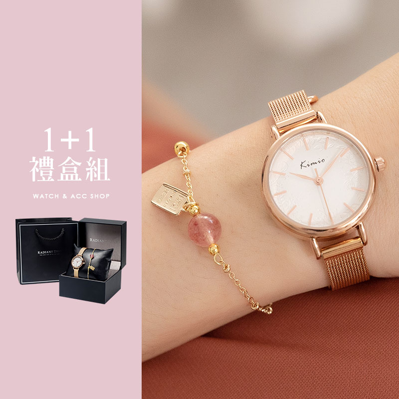 女人愛美愛自己 重返榮耀1+1獨家超值禮盒手錶鈦鋼手鐲二件組-酒紅面玫金帶+玫金手環