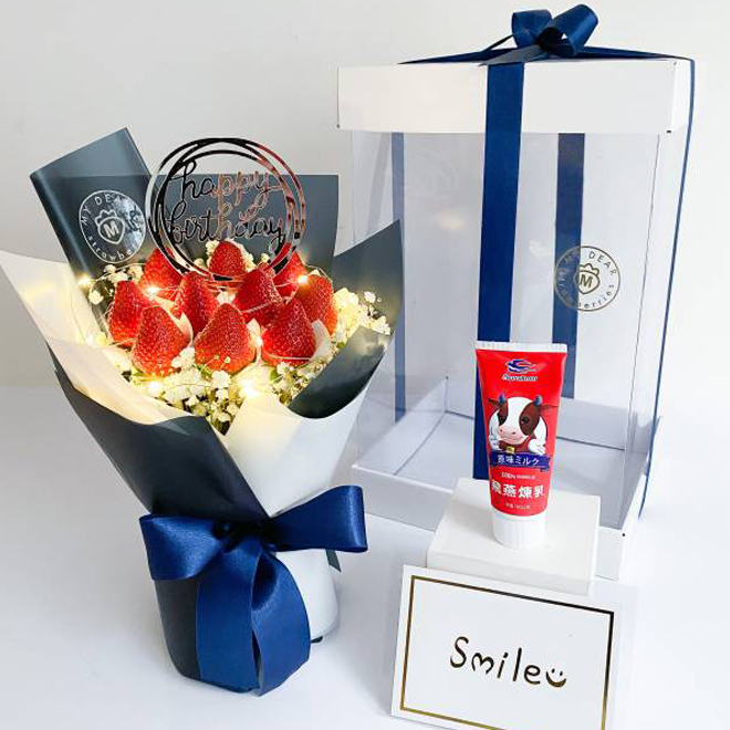 告白神器💓【My Dear草莓花束】Into Black 發光草莓花束禮盒組(贈送好吃牛奶煉乳)水瓶座生日禮物