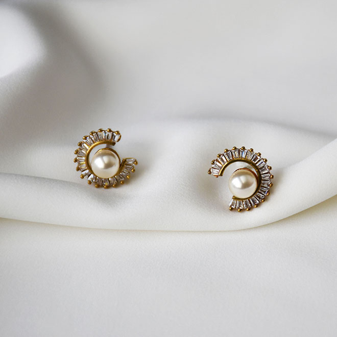 【RADIANT STAR】[925純銀]花路小徑立體圓珠花朵鑲鑽耳環