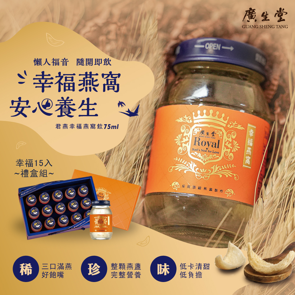 【廣生堂】君燕幸福燕窩飲(75ml/瓶)6入禮盒x1(贈燕萃皇家乳清滋潤香皂(100g/個)x1)