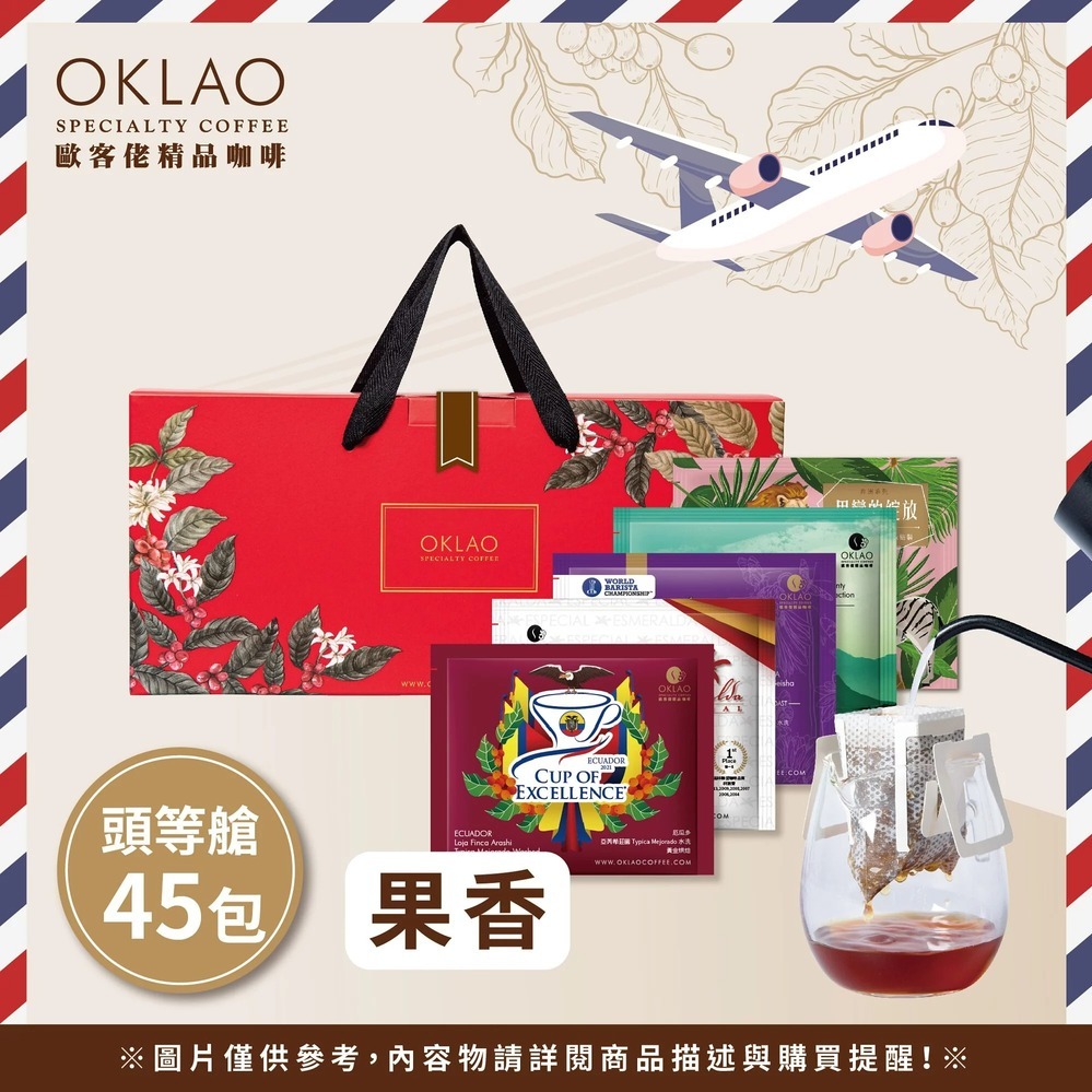 3日內出貨【OKLAO 歐客佬】【商務艙 用味蕾旅行全世界】精品掛耳禮盒(45包/盒)附提繩