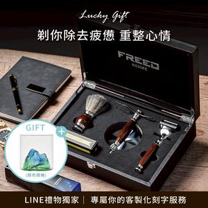 [快速出貨]【FREED】五刀式刮鬍刀豪華禮盒四件組(仿紫紅檀木) 客製化刻字 生日禮物 送禮推薦 男生禮物 水瓶座 雙魚座 禮物獨家 新品上市 情人節禮物