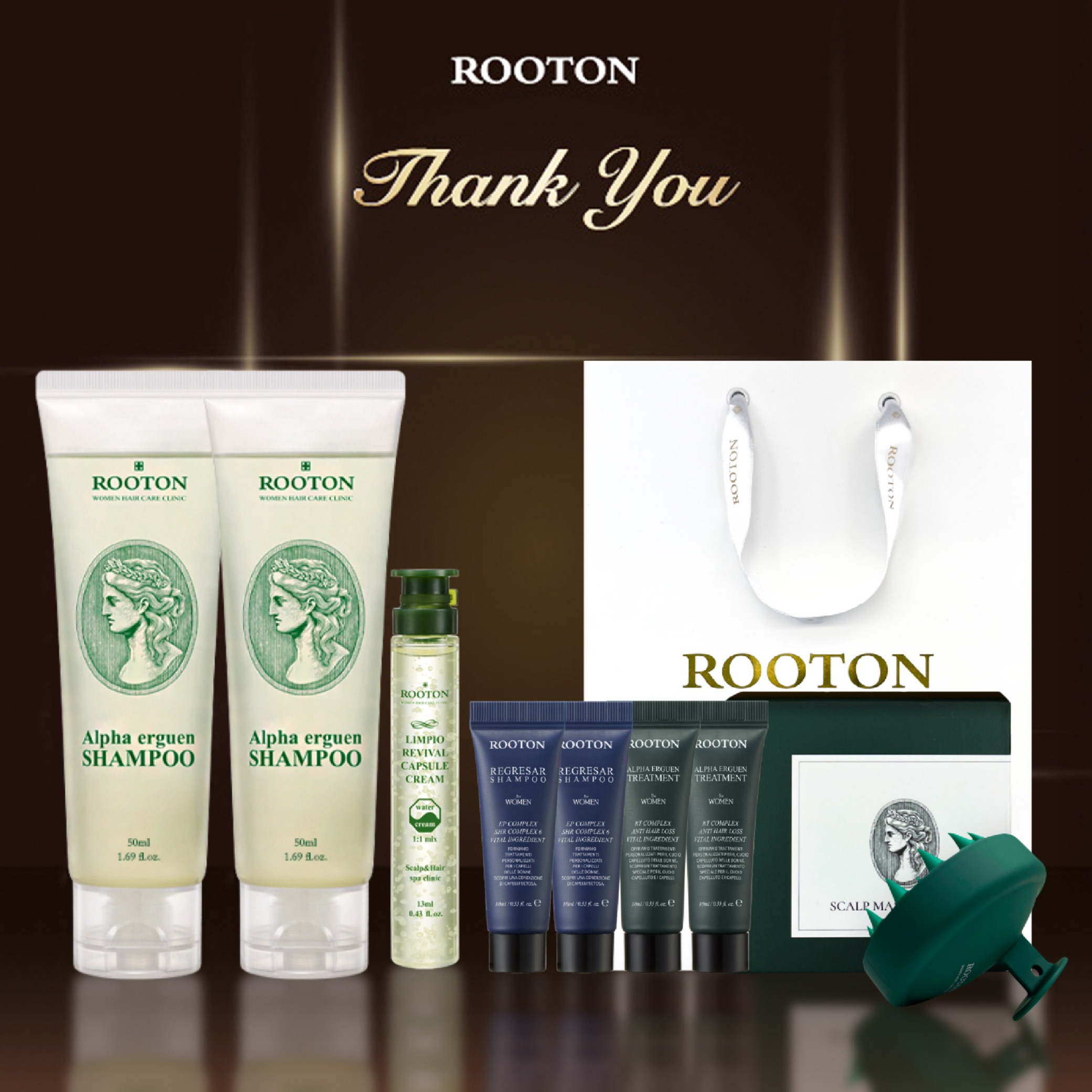 快速出貨【ROOTON】生日快樂!甦活植萃髮根噴霧150ml+甦活植萃洗髮精5ml+甦活植萃護髮素5ml+頭皮按摩梳+海藻洗髮精10ml x2+護髮素10ml x2+品牌質感提袋(水瓶座生日禮物)