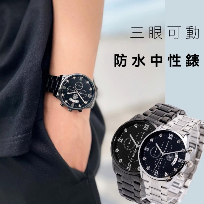 【需有其錶】日月星辰三眼中性錶 防水防刮 可當男錶 女錶