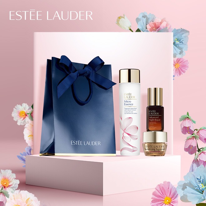 享貓咪髮帶/小包【Estee Lauder 雅詩蘭黛】水瓶座小棕瓶生日修護組| 送女友 生日禮物推薦 (棕瓶20ml/15ml+櫻花原生露15ml)