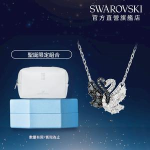 【SWAROVSKI 施華洛世奇】Swan 鏈墜 天鵝 黑色 多種金屬潤飾 享聖誕限定收納包