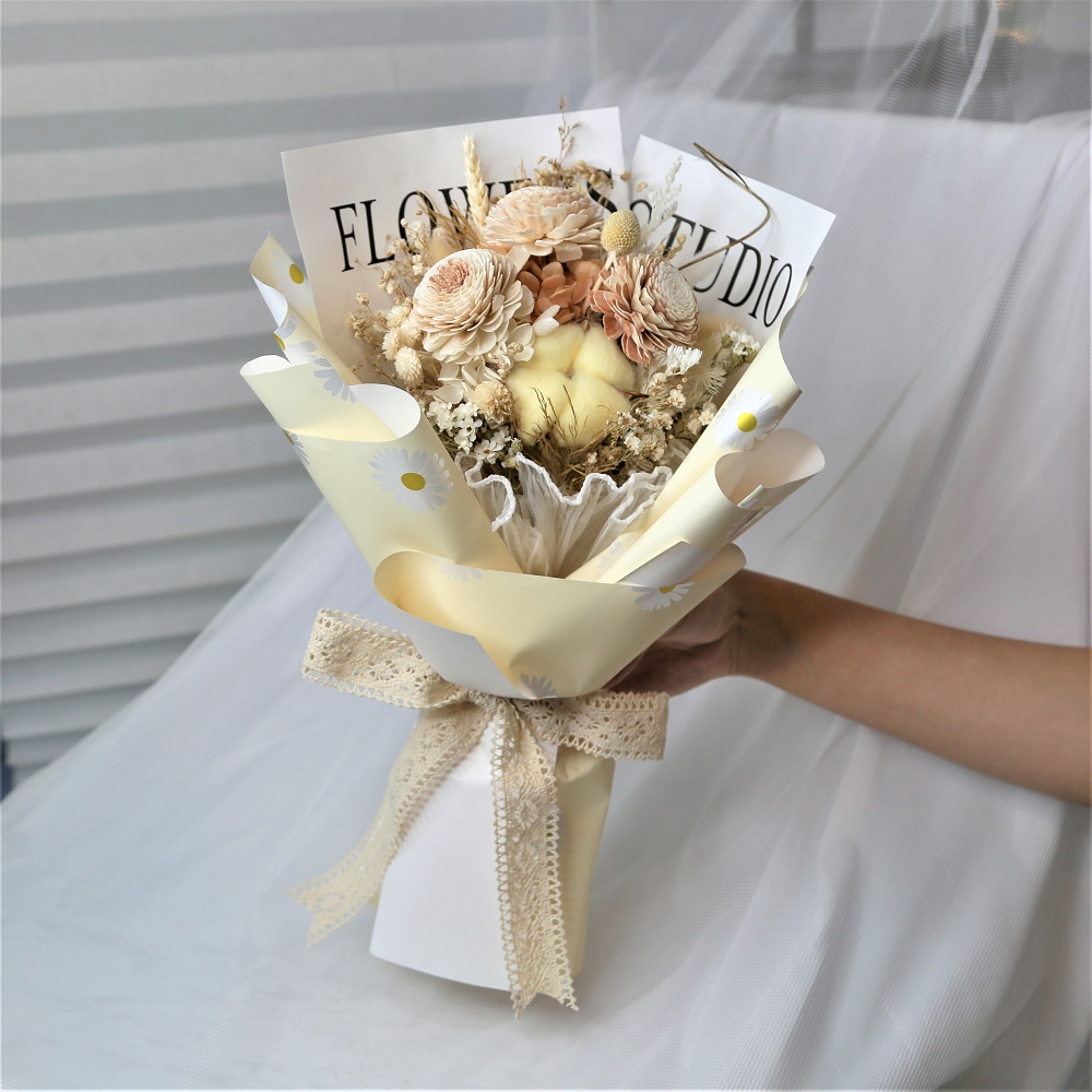 【KIRA與花花藝】一心一意金莎花束/十一顆/米黃/乾燥花花束/情人節花束/畢業花束/生日禮物/情人節禮物