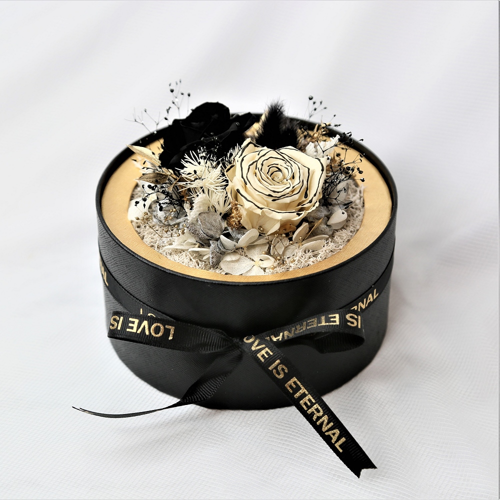 【Flower Plus】 箔金紅 | 樂透球永生花盒