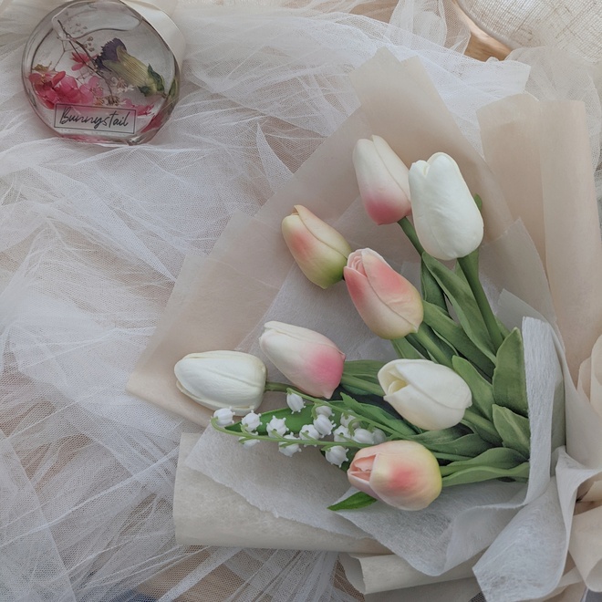 【親好屋】(兔尾草花藝) 擬真鬱金香花束-5支 擬真花束 居家裝飾 店面裝飾 拍攝花禮 室內擺設