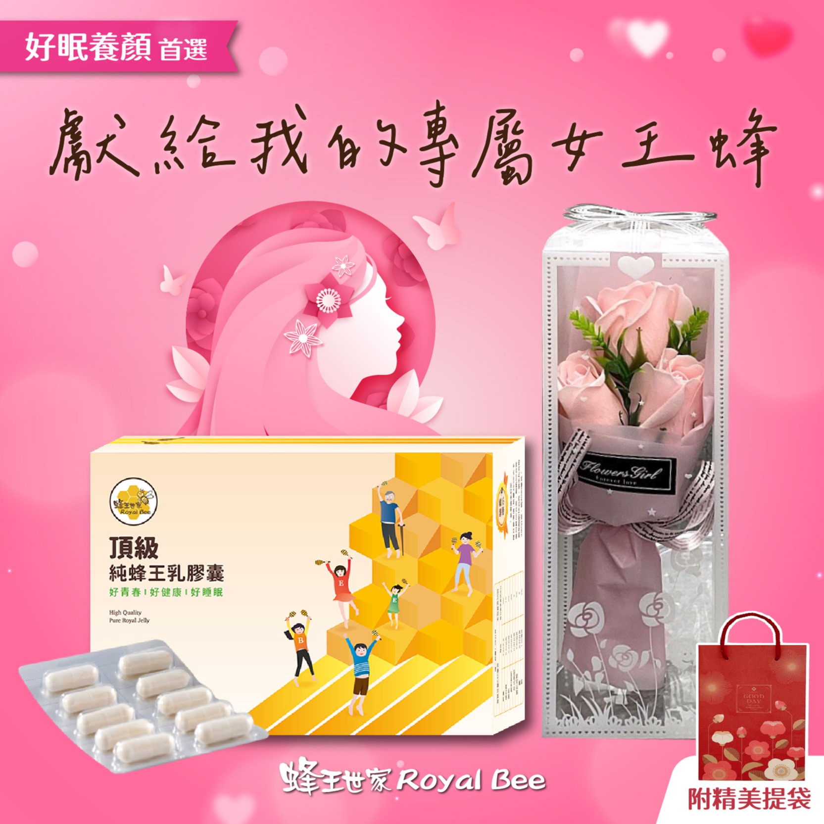 [快速出貨] 好好愛自己 ❤️【蜂王世家】頂級三日齡純蜂王乳膠囊100粒|母親節快樂🌹|好眠養顏|全素食|伴手禮