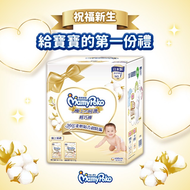 【滿意寶寶】極上成長賀禮(黏貼型L52片x1包+輕巧褲L36片x1包) 新生兒禮