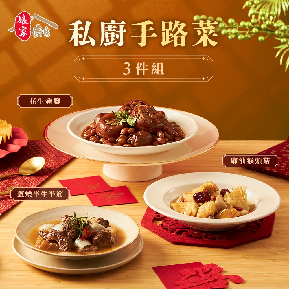 [保佑你福氣滿滿呷飽二|愛的祝福|祝添福壽]【大甲鎮瀾宮xJABA】福滿豬腳麵線(滷豬腳650g+麵線200g)長壽麵線x兩盒