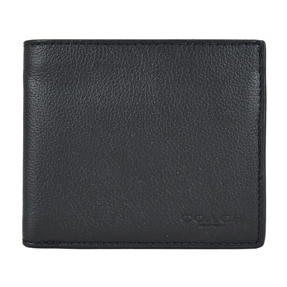 [平輸版] 【COACH】黑色C LOGO皮雕荔枝紋真皮雙摺二合一男夾 真品平輸