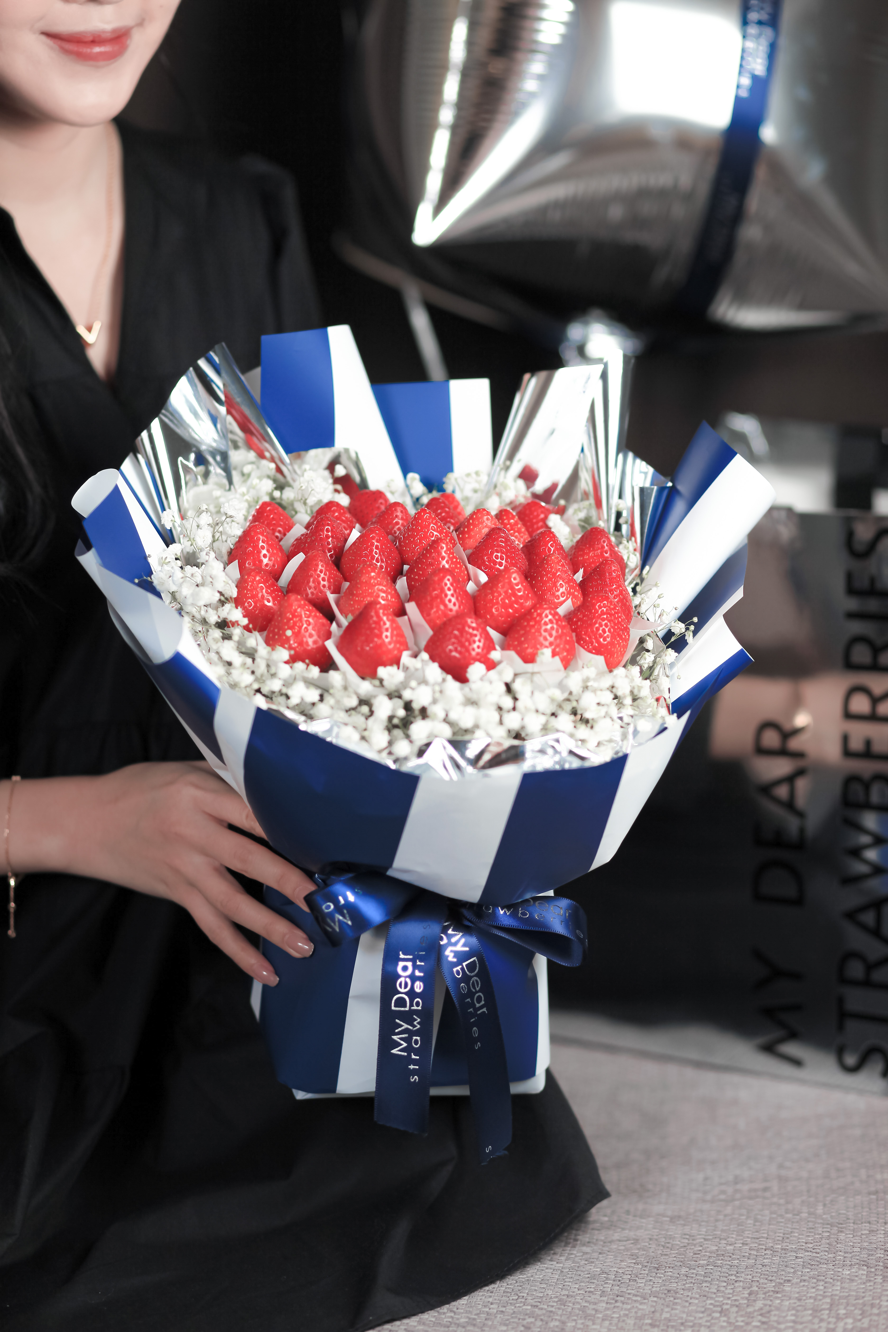 聖誕草莓季🍓【My Dear草莓花束】聖誕派對奢華白金草莓花束禮盒組(贈送好吃牛奶煉乳)摩羯座生日禮物