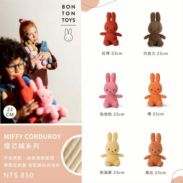 BON TON TOYS|Miffy米菲兔ECO燈芯絨填充玩偶-白(23/33/50/70cm 四種尺寸)