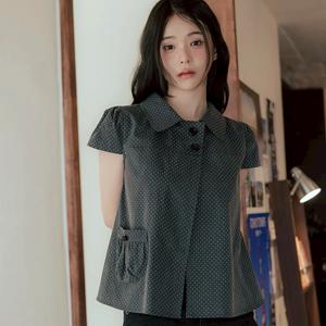 💖韓國暢銷品牌HIGH SCHOOL DISCO🆕新品上架 灰色復古圓點公主袖傘擺襯衫