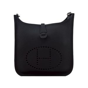 [平輸版] Hermes 愛馬仕 Evelyne 23cm H LOGO牛皮布款背帶斜/肩背包(黑銀/K刻)