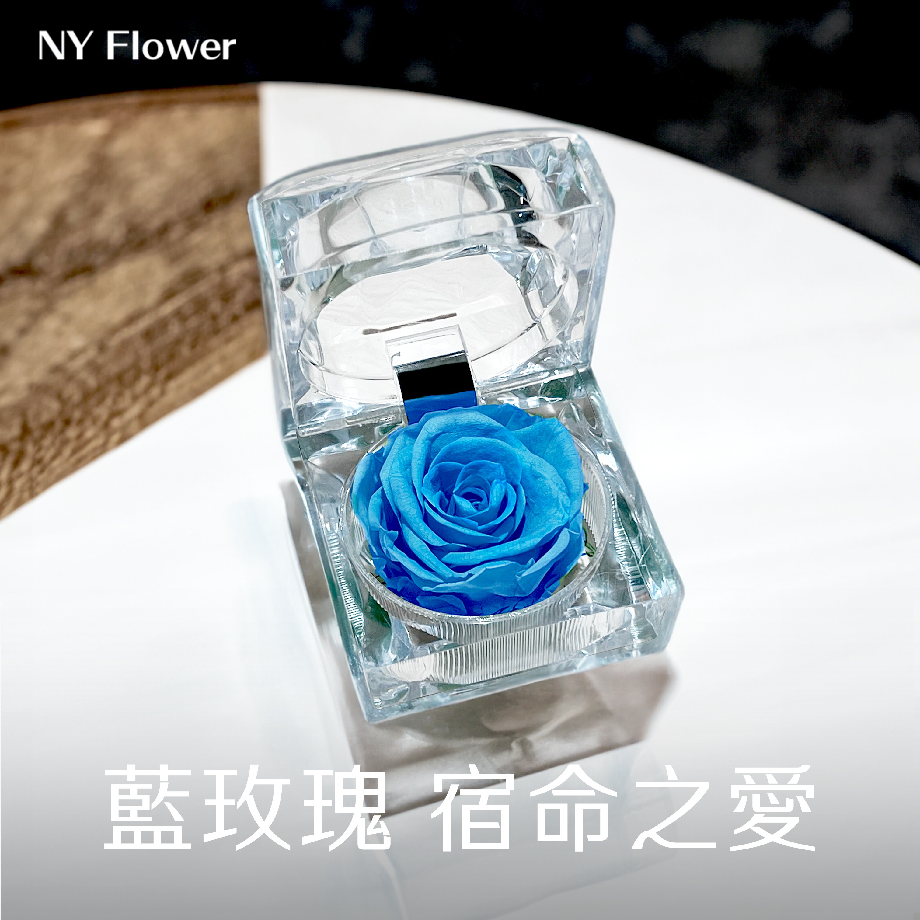 【NY Flower 紐約花藝】1/21~2/19 Aquarius 水瓶座生日限定禮 SAY YES 永生恆星戒盒永生花 - 雪霜白 (贈送10ml精油)