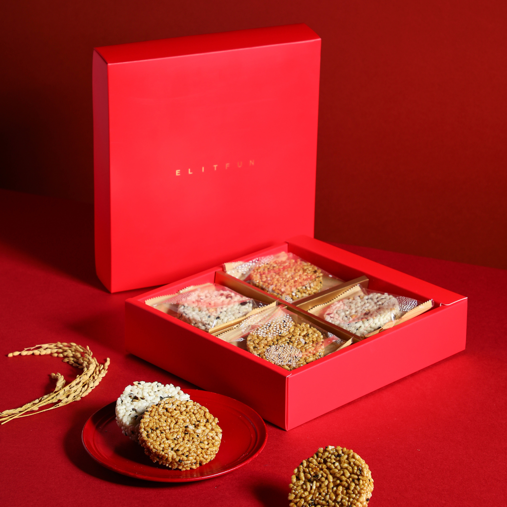[快速出貨]✨新年快樂✨綜合米果禮盒12小包入✨手提式設計無附提袋✨ 贈好朋友盤1個 新年禮盒