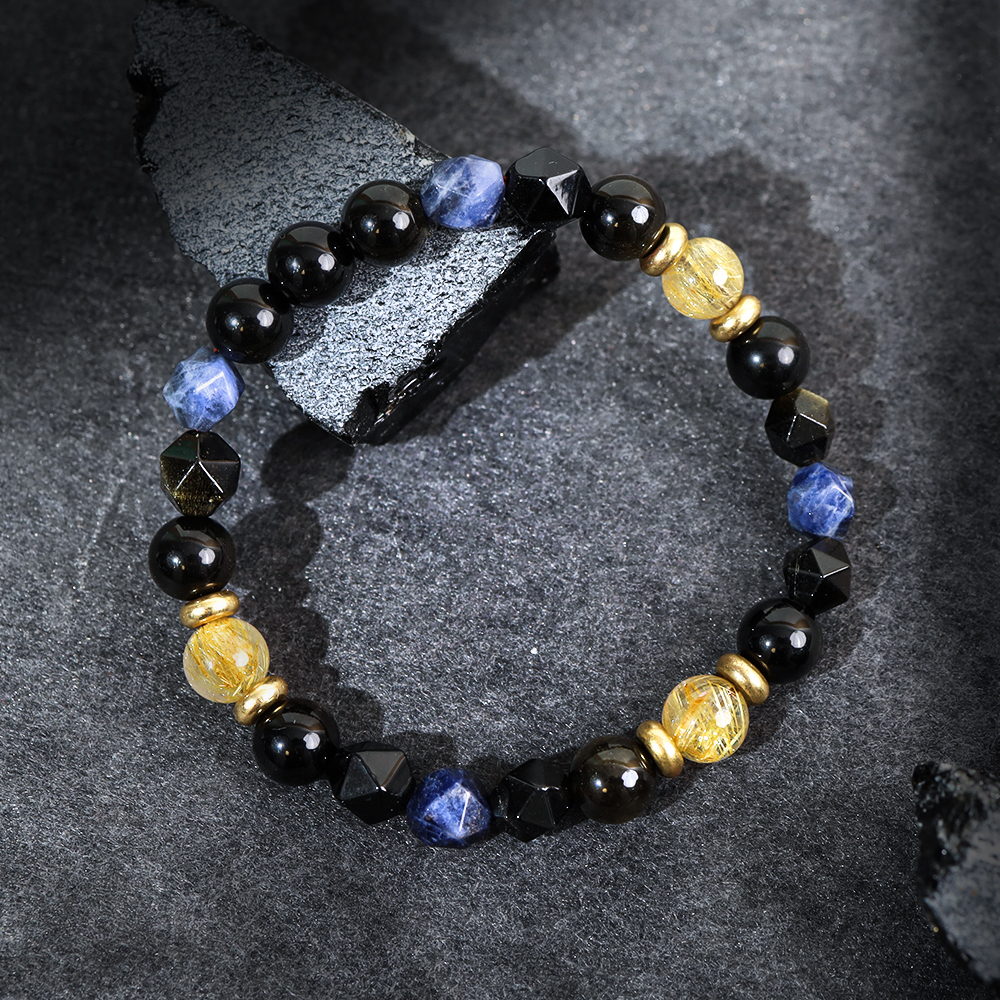 【月色真美】[事業招財]乘著陽光啟航 | A127鈦晶黃水晶藍紋石手鍊