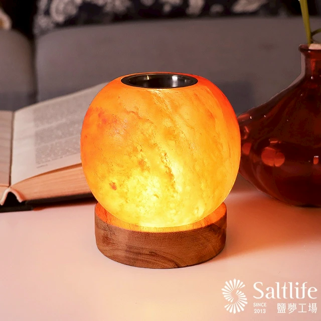 ✦精美禮盒心意傳遞✦ 貴人運旺【鹽夢工場】 小白原礦鹽燈|原木座