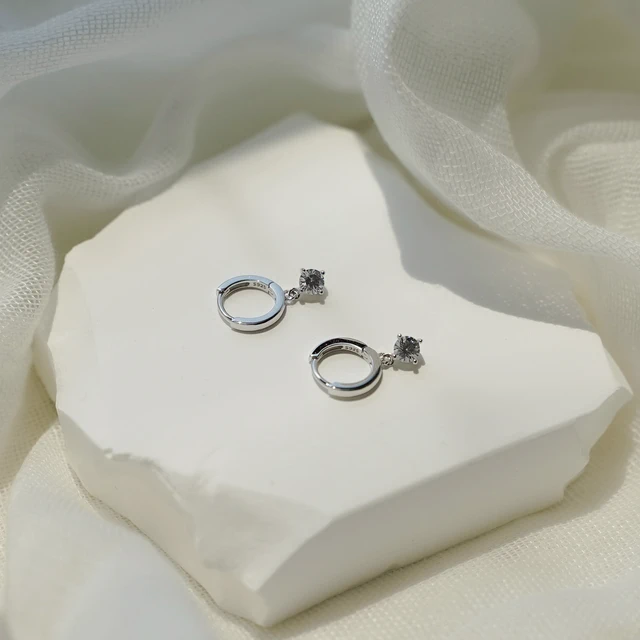 【ZUZU JEWELRY】Classic細緻排鑽耳環|圓圈單鑽耳環|925純銀|生日禮物