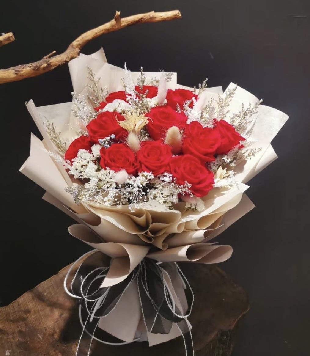 愛你999♥️【Floral M】永恆的浪漫紅玫瑰永生花束 水瓶座生日禮物